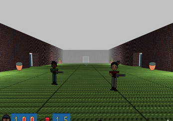 W S A D For Movement, E key for Flash Light, and enter acting with objects, space bar for jump, and left mouse key to attack. Made With Easy FPS Editor